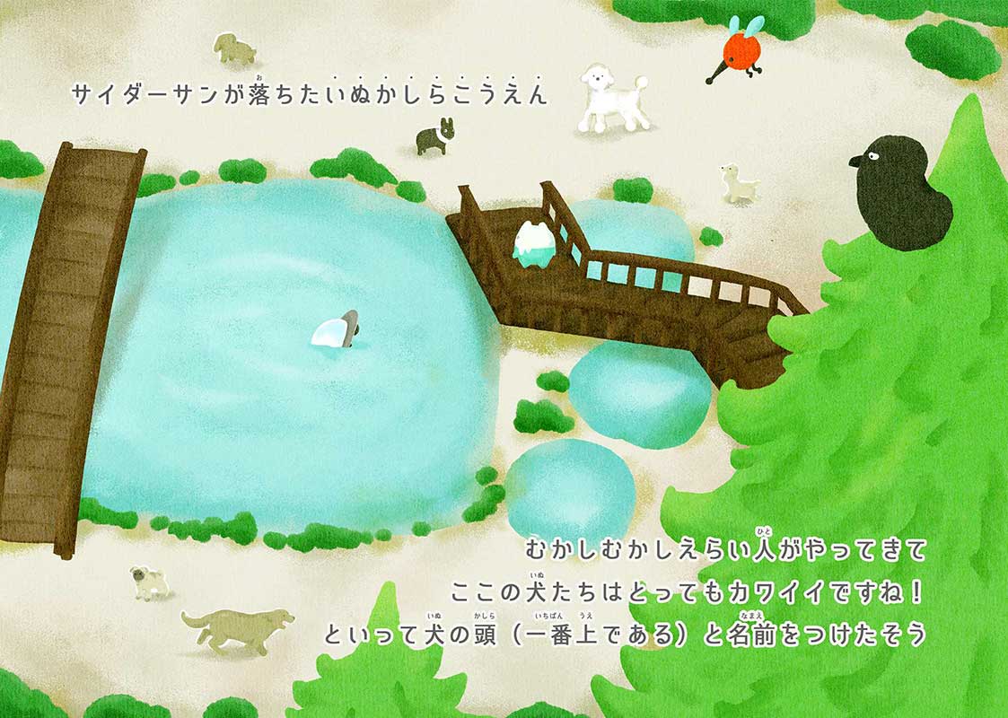 絵本「いぬかしらこうえん」で物語を読むことができます。