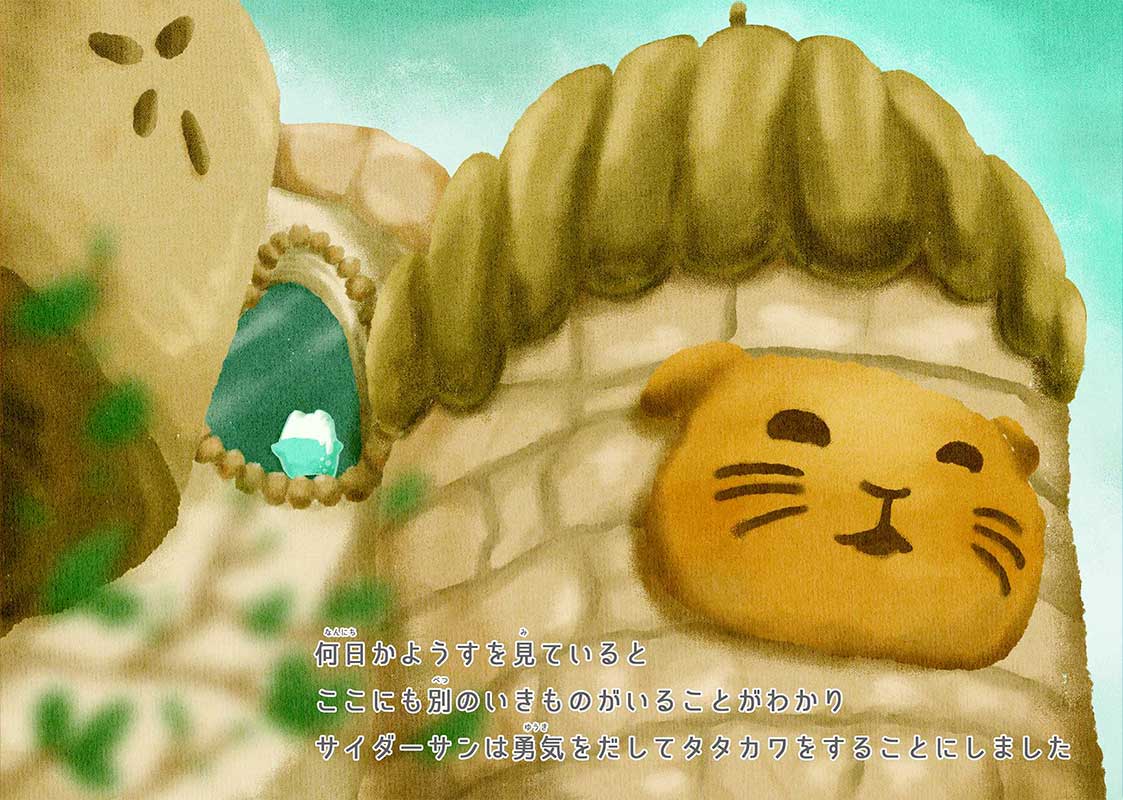絵本の中にはお気に入りの写真を入れることができ、絵本の中でサイダーサンにタタカワ(カワイイ戦い)を挑むことができます。