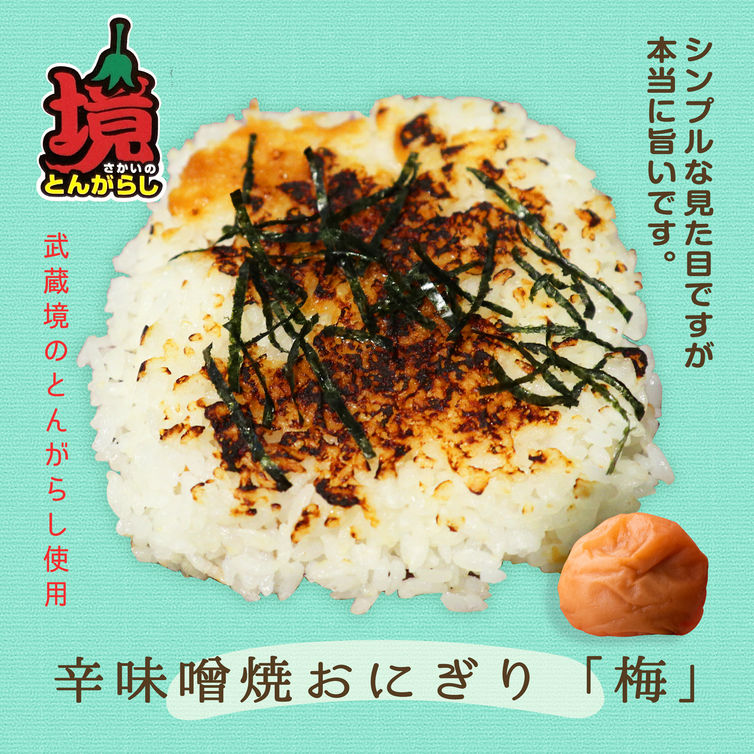 味噌焼おにぎり「梅」定番メニューを焼きたてで(他のお味もあります)