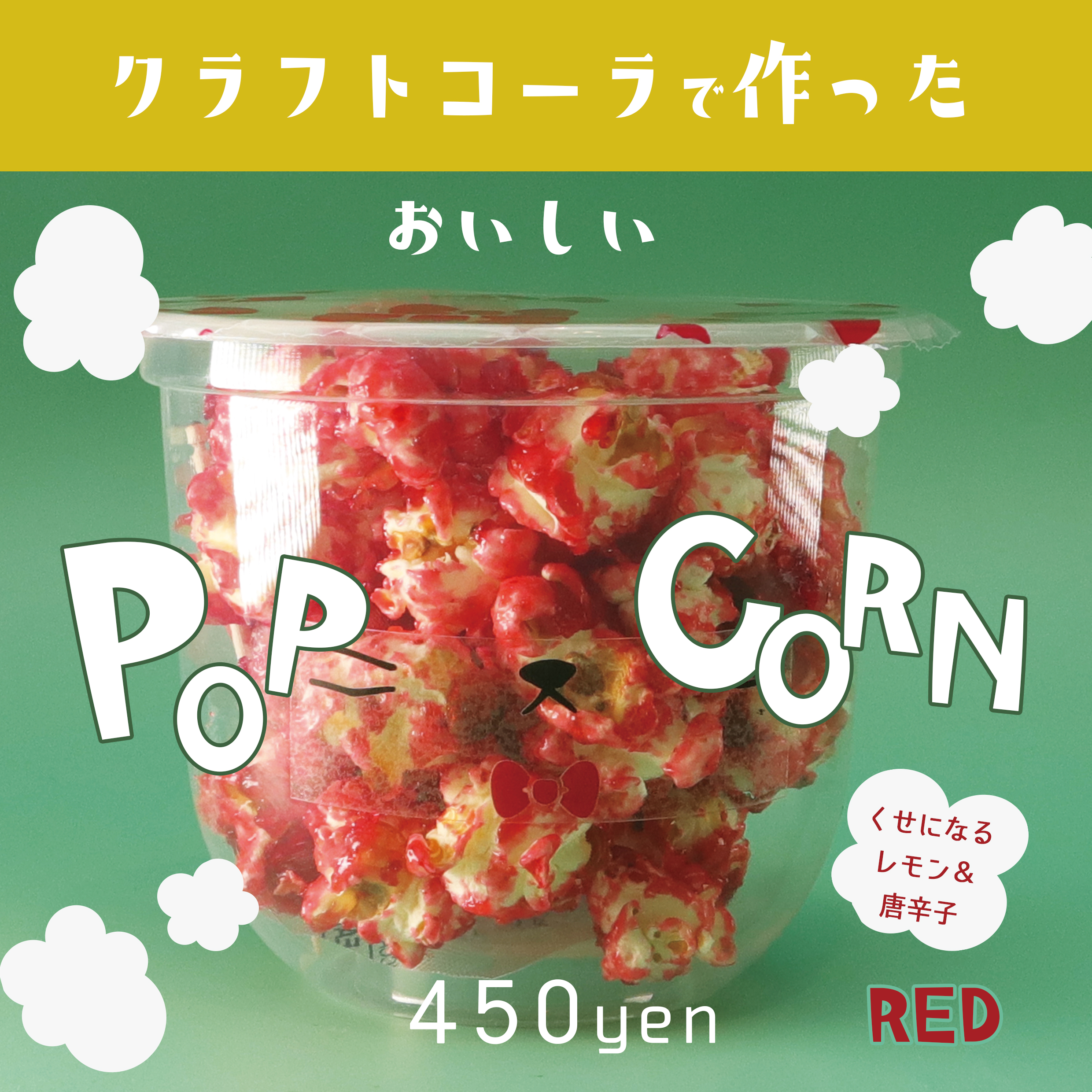 クラフトコーラポップコーンRED唐辛子を入れてさらにクセになります。